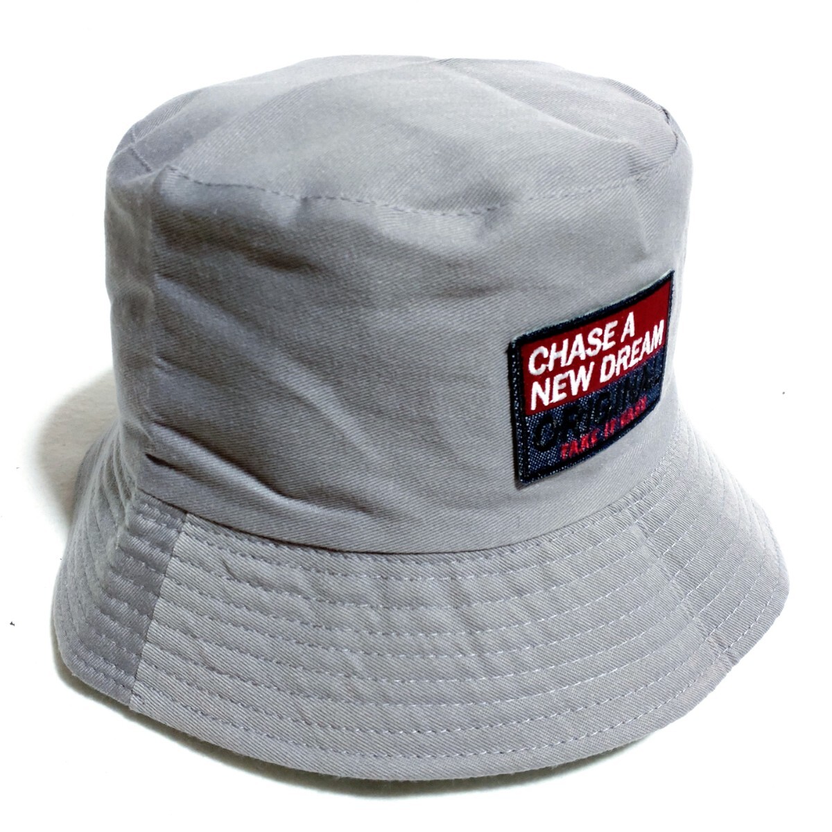 > 特価/未使用【サイズ=58~59cmフリー】ノーブランド/アメカジ刺繍ロゴ/男女兼用/リバーシブル/バケットハット/gray