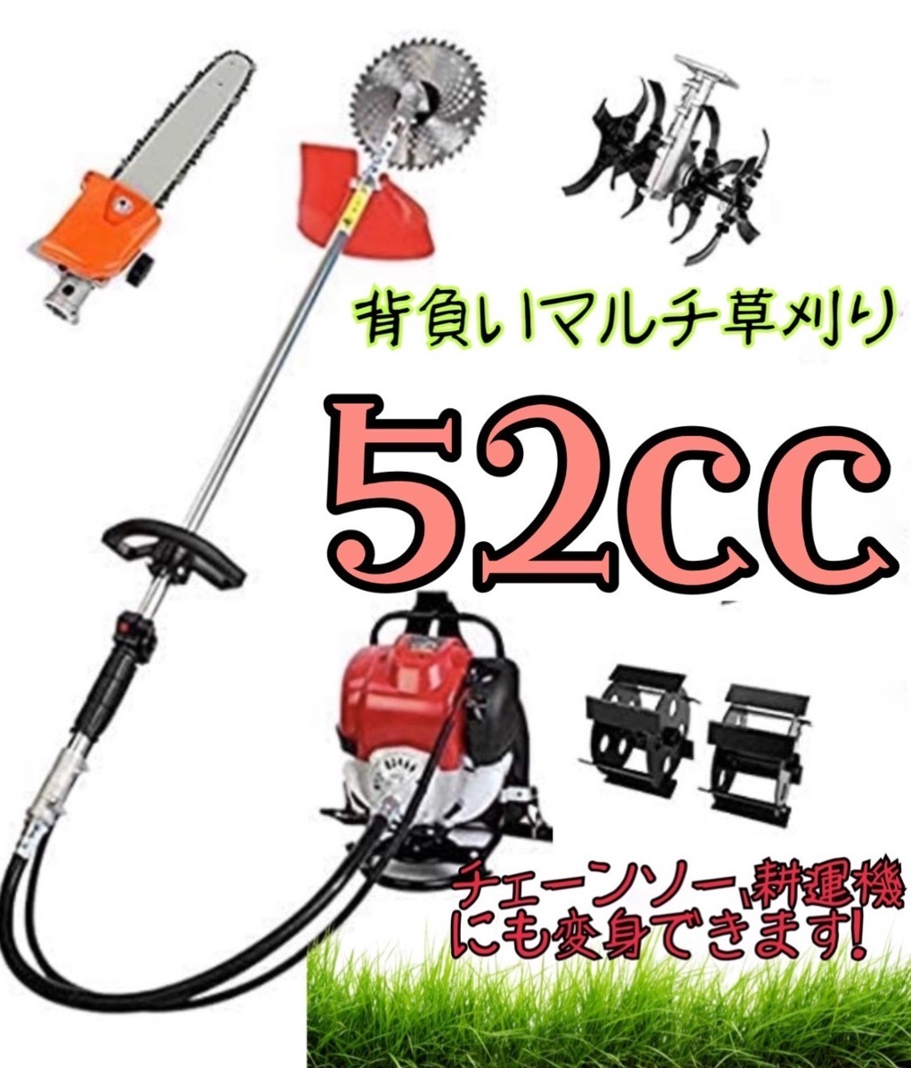 - 背負い 草刈機 チップソー ナイロンカッター チェーンソー 耕運機ローター、草刈りローター 交換自在 52cc 新品