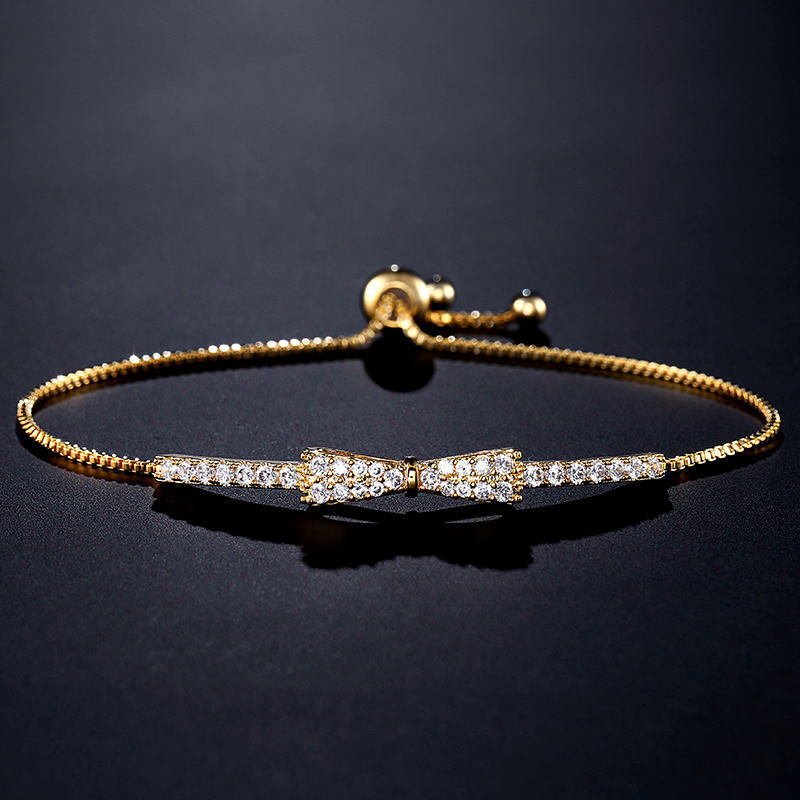 - 繊細な輝きで気品をプラス■リボン型czダイヤモンド■ゴールドk18色ブレスレット