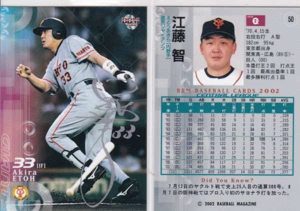 - ●2002BBM/1st 【江藤 智】 シルバーサインパラレル No.50:広島 R4