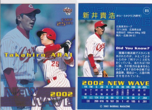 - ●2002BBM/2nd 【新井 貴浩】 サブ版:NEW WAVE No.815:広島 R2