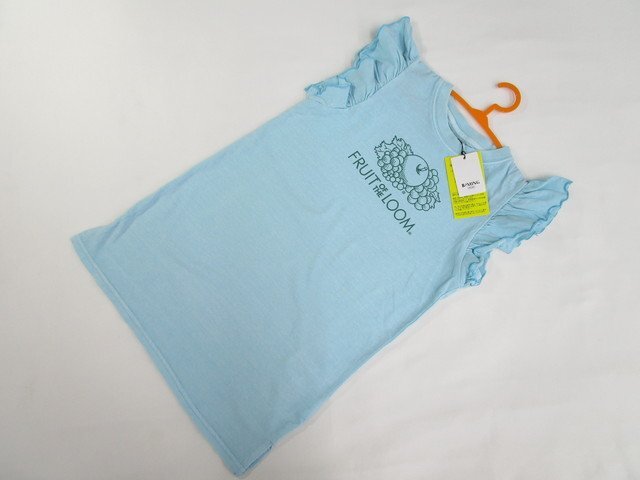 > キッズ 新品タグ付 FRUIT OF THE LOOMひざ丈 フリル半袖 クルーネック ワンピース 100 サックスブルー 【メール便可】