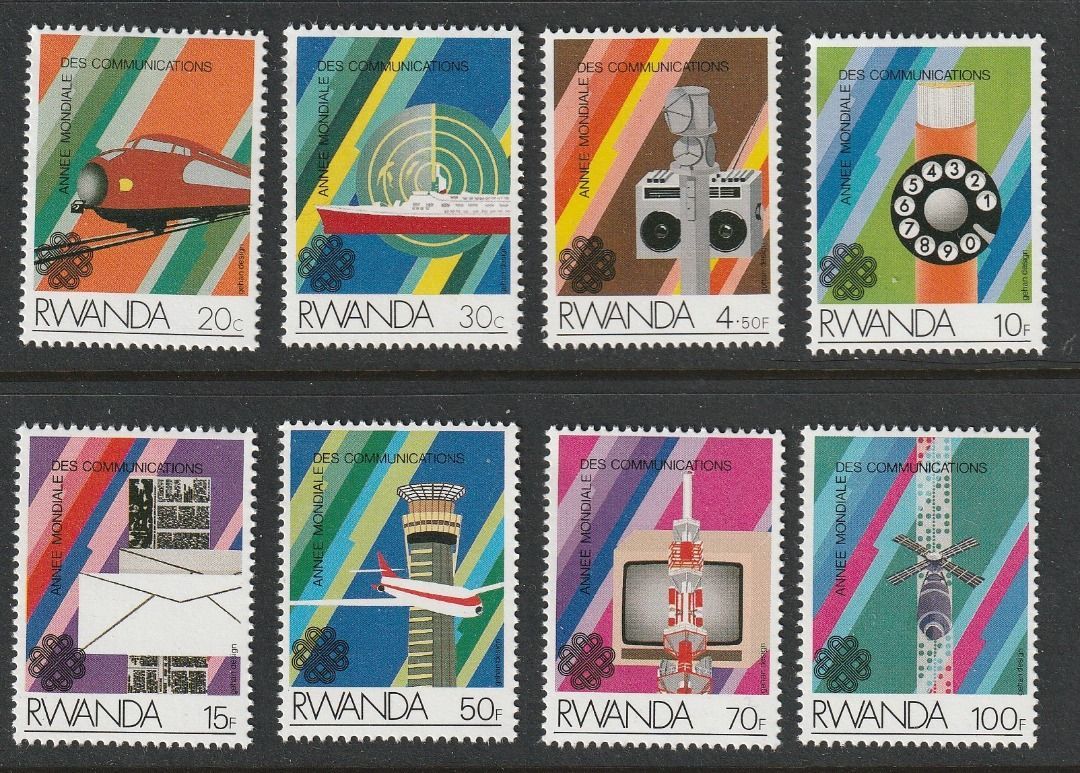- (ルワンダ)1984年世界通信年8種完、スコット評価8.2ドル(海外より発送、説明欄参照)