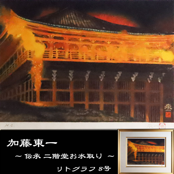 - ◇雅◇ 真作保証 加藤東一 「伝承 お水取り 東大寺」 リトグラフ 8号 直筆サイン 日本画巨匠 エディション有 額装 /RYO.25.10 [B55] SN