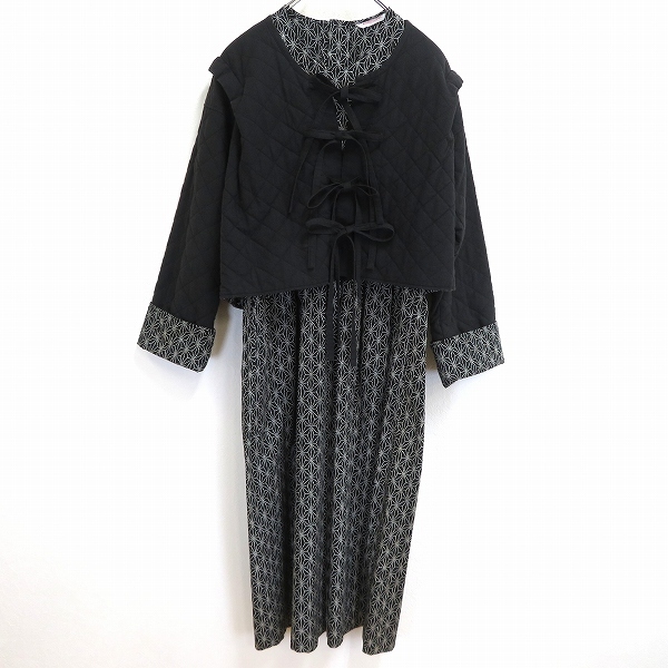 > #aux ワンダフルワールド WONDERFUL WORLD カネコイサオ セットアップ 黒 和柄 ジャケット ワンピース 1998年 ヴィンテージ [970569] k01