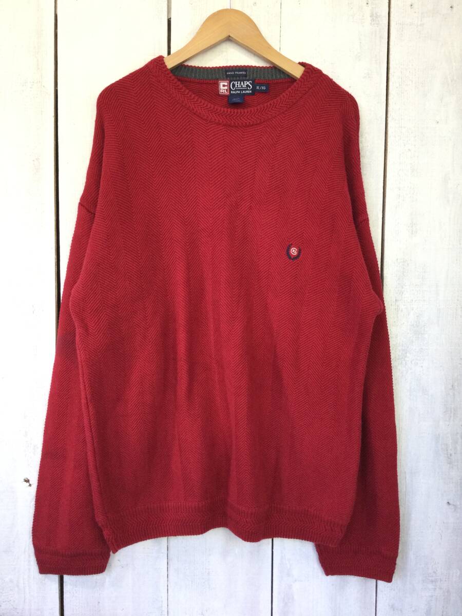 - CHAPS RALPH LAUREN チャップスラルフローレン ワンポイント コットニット クルーネックセーター メンズXL 大きめ ややダメージあり