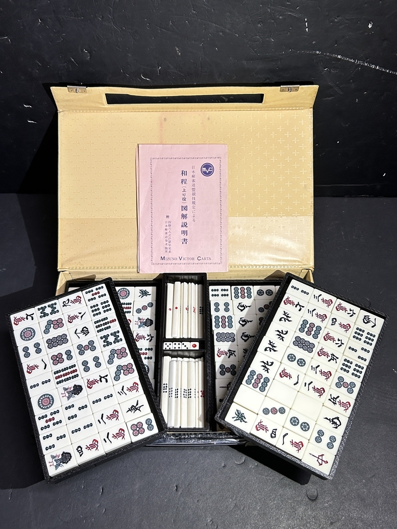 - ● コレクター必見 レトロ 麻雀 麻雀牌 背竹 点棒 サイコロ ボードゲーム ケース付き ゲーム コレクション Zr386