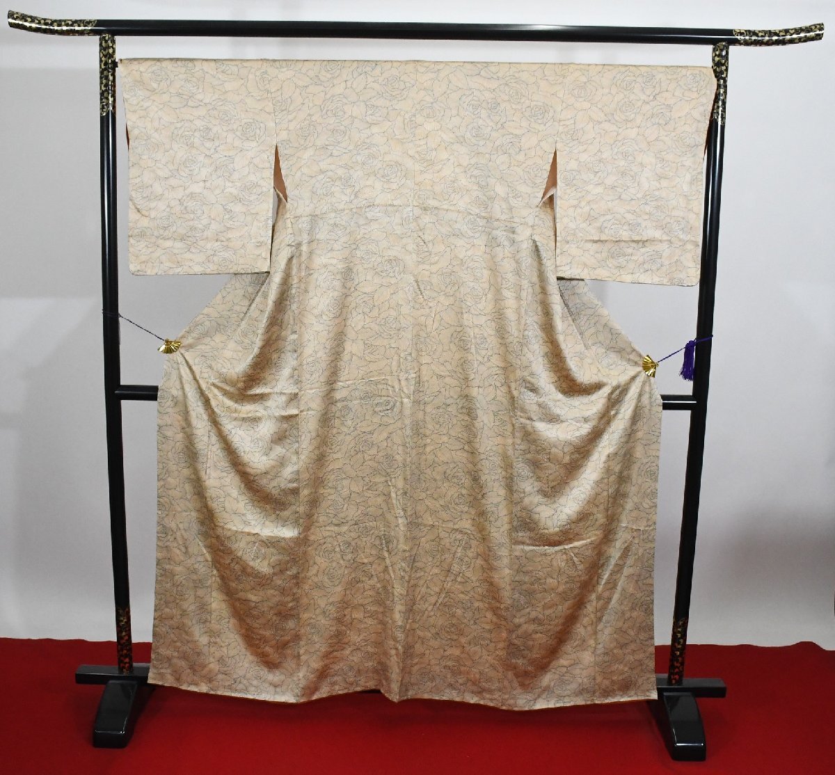 - 小紋 着物 袷 薔薇 身丈153cm 裄丈68cm ★ kb-7271 桜庭呉服店