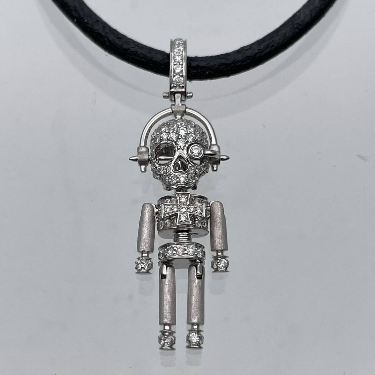 - イーノス ネックレス スカルトップ 43cm K18WG 9.7g ダイヤモンド 作家ジュエリー 日本人 デザインジュエリー E-NO'S 中古 ◆2008