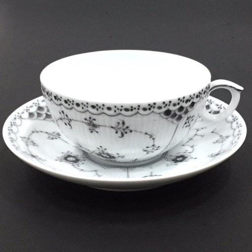 > ロイヤルコペンハーゲン ブラックフルーテッド ハーフレース カップ&ソーサー 洋食器 食器 テーブルウェア 保存箱付