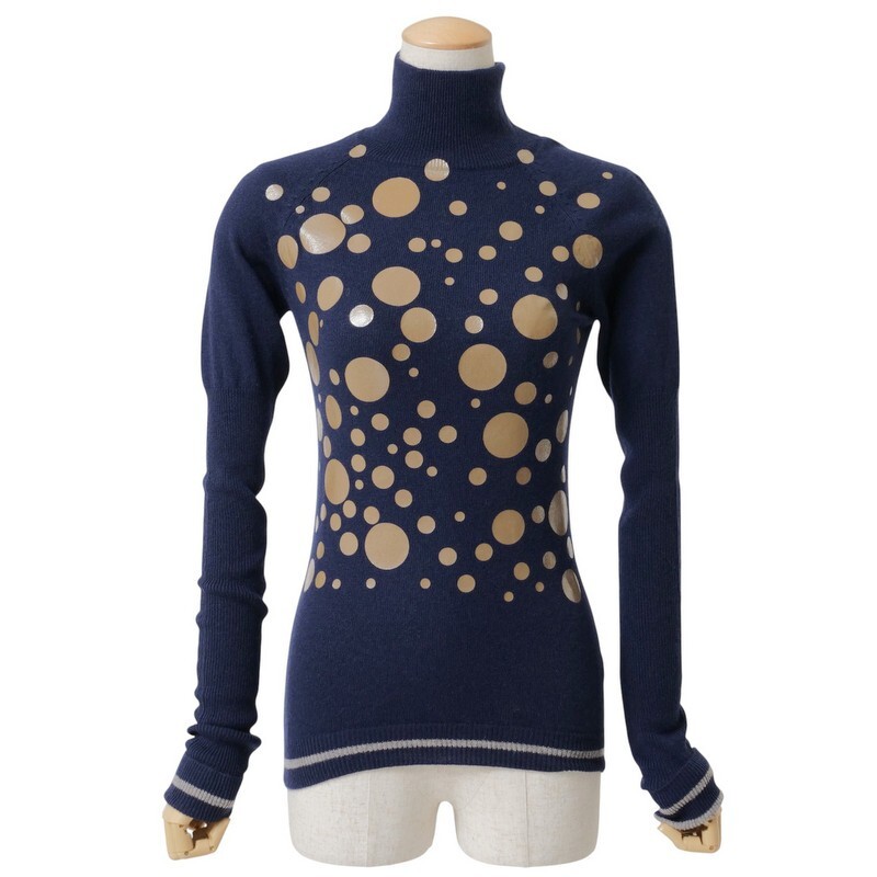 > GR4955□未使用 ローカ/ROHKA ドットプリント 長袖 ハイネック セーター ニットプルオーバー サイズS ネイビー×ブラウン系