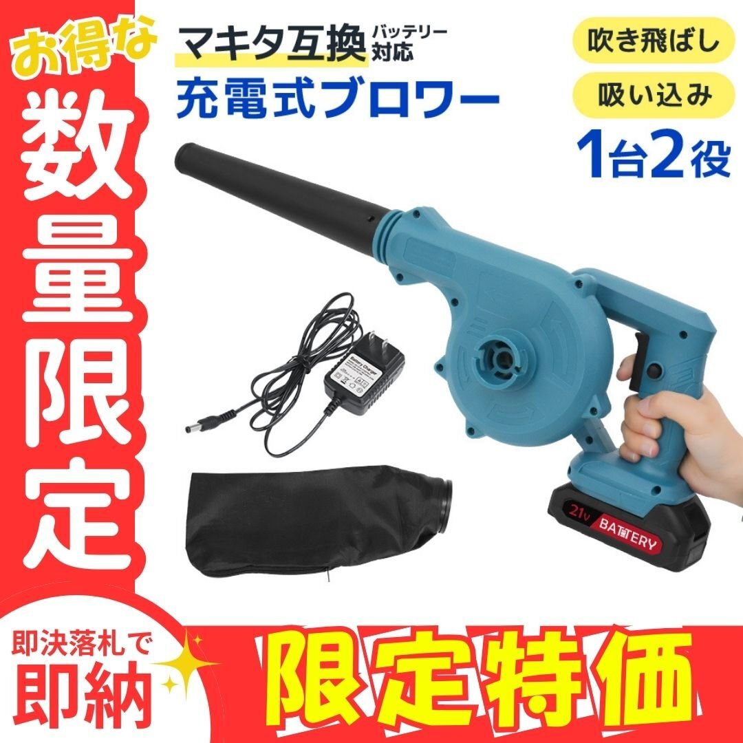 - 【限定セール】充電式 ブロワー 送風機 コードレス バッテリー 枯葉 落ち葉 落葉掃除機 集じん機 集塵機 掃除機 集草機 軽量 手軽 風量調節