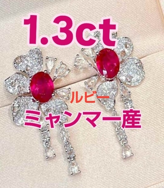 - 1.3ct ミャンマー産 ルビー ピアス「1.3カラットの深紅の輝き—— ミャンマー産ルビーが紡ぐ、優雅な耳元」新品未使用