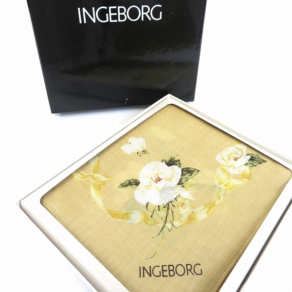 > #ae インゲボルグ INGEBORG ハンカチ ベージュ マルチ 花柄 リボン ピンクハウス 未使用 箱付き レディース [962981] k01