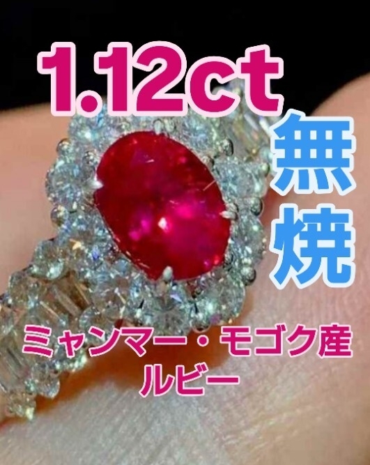 - 1.12ctミャンマーモゴク産無処理無焼非加熱ノーヒートルビーピジョンブラッド 18KリングAIGS鑑定書貴族の証明凝縮されたモゴクの真髄新品