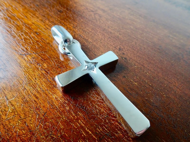 - 仁尾彫金『一つ星ジルコニア、ビッグシルバークロス2』ハンドメイド345