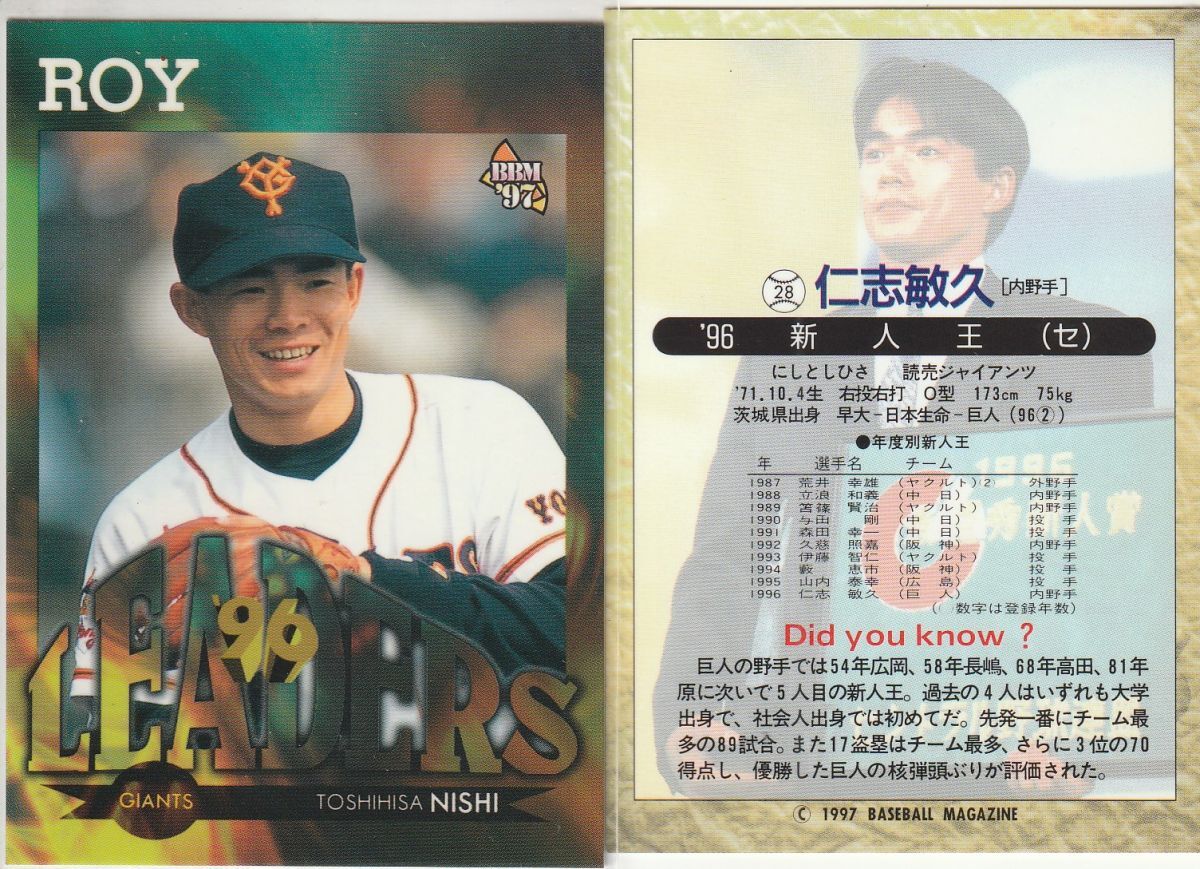 - ●1997BBM【仁志 敏久】リーダーズ'96新人王(セ) No.28:巨人 R2
