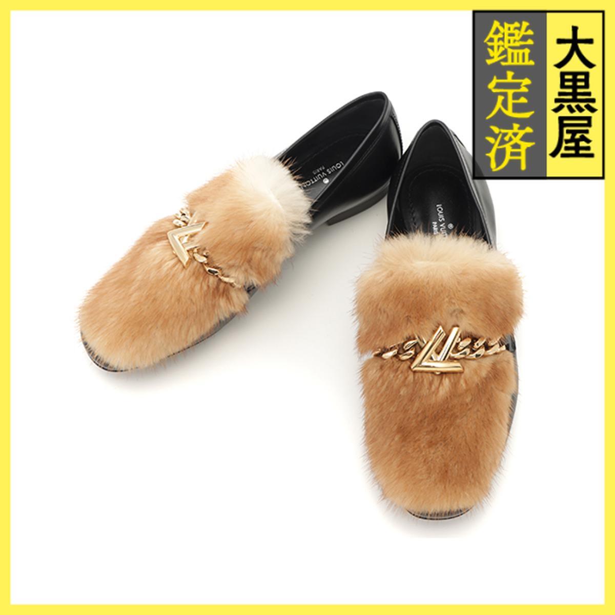 > LOUIS VUITTON ルイヴィトン アッパーケース・ライン ローファー レディース36 ブラック レザー/ファー 2148103896538