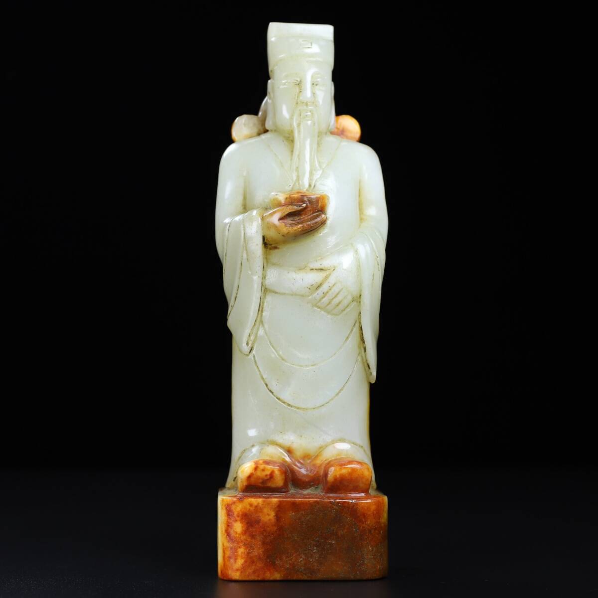 - ▽鴻▽ 清朝時代 和田玉彫 財神造像 時代物 中国古美術 骨董品
