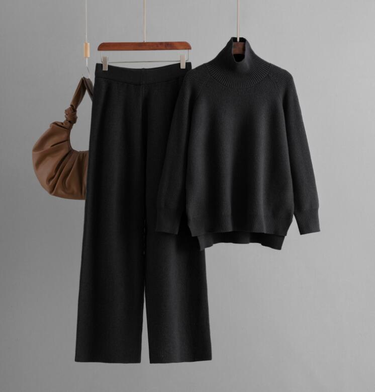 - M1017 パンツスーツレディース● 着心地抜群 20代30代40代 ● ニット素材 上下セット black