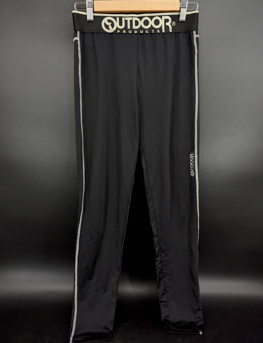 - 4682C 送料185円♪ 美品 OUTDOOR アウトドア メンズ ブラックxシルバー ウエストロゴ ロング コンプレッションタイツ LL