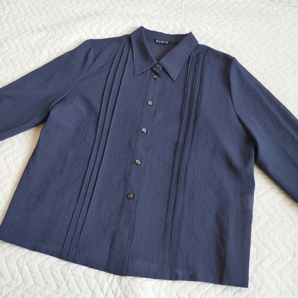 - RIBIA シャツ ブラウス 長袖 11 L 手洗い ネイビー 質感がステキな サラサラ薄手 お手入れ簡単 シワになり難い 春夏秋冬 匿名 送料無料