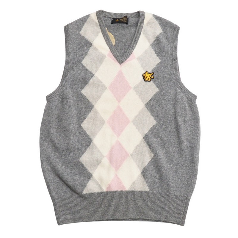 - TJ4177▼未使用/スコットランド製*バリー/barrie×マルマン/Maruman*カシミヤ Vネック ニット ベスト*サイズ42*グレー×ピンク×白
