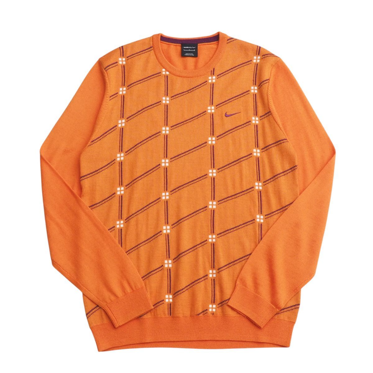 > TJ5434+NIKE GOLF/ナイキゴルフ*メンズL*アクリルウール*デザインニットセーター*クルーネック*スウッシュロゴ刺繍*ハイゲージ*オレンジ系