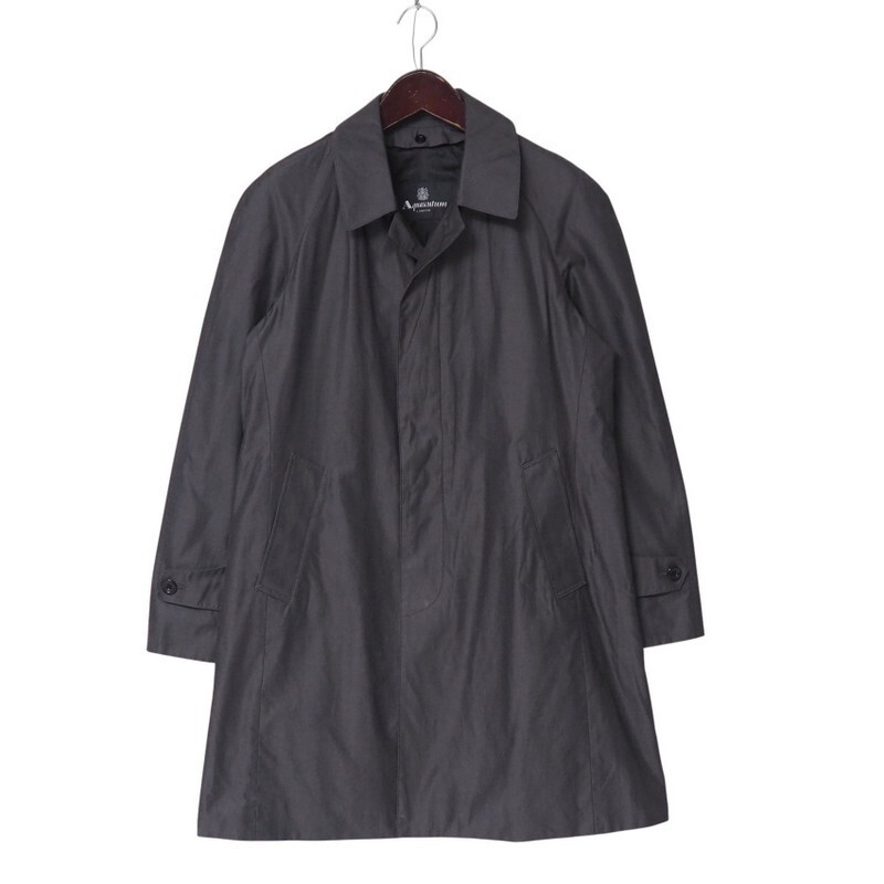 - TI9479▼アクアスキュータム Aquascutum*ウールカシミアライナー付き ステンカラーコート*裏:クラブチェック柄*サイズ38*グレー系