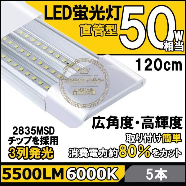 > ★送料無料・30日間保証付き★高輝度 薄型 直管LED蛍光灯 5本セット 消費電力18W 50W相当 5500lm 昼光色6000K 3列LED搭載 器具一体型