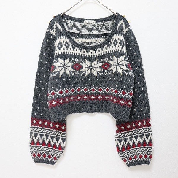 - ロイスクレヨン LoisCRAYON ニット セーター トップス ショート ノルディック柄 パール スパンコール w926748n