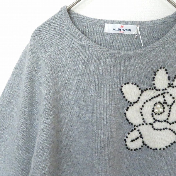 【ブランド】ギャラリービスコンティ GALLERYVISCONTI 【アイテム】ニット セーター【表記サイズ】2【平置き実寸】肩幅:約 35cm袖丈:約 56cm身幅:約 45cm着丈:約 51cm【状態】未着用品【備考】-【色】グレー系【素材】画像をご参照ください。当店の商品はすべてリユースアイテムとなります。特質上、些細なダメージは記載しておりませんので着用に問題のない使用感、着古した雰囲気などはご了承くださいませ。キーワード/アクイール/古着/used/ビンテージ/ヴィンテージ/昭和/レトロ/バレエコア/リボンコーデ/タグ付き未使用/ビスコンティ(株)