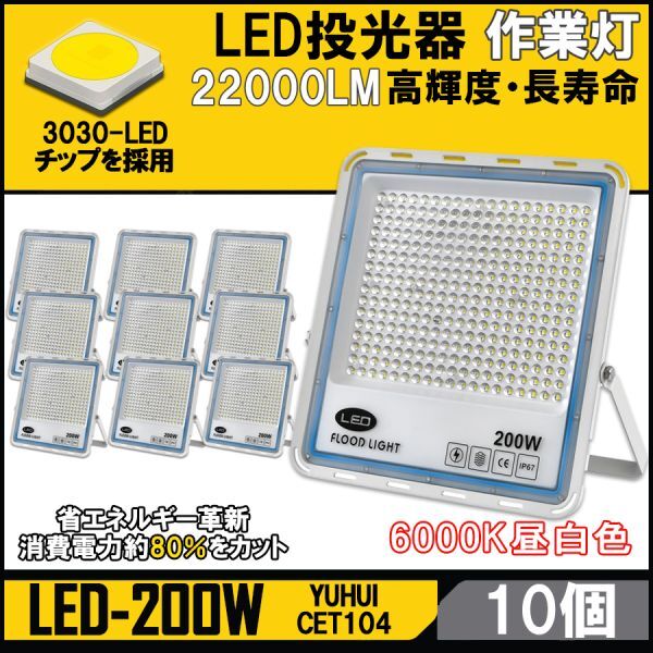 > ★送料無料・30日間保証付き★極薄型 LED投光器 200W 10個セット 広角120° 昼光色6000K 22000LM IP67 作業灯 駐車場灯 防水 屋外 室内