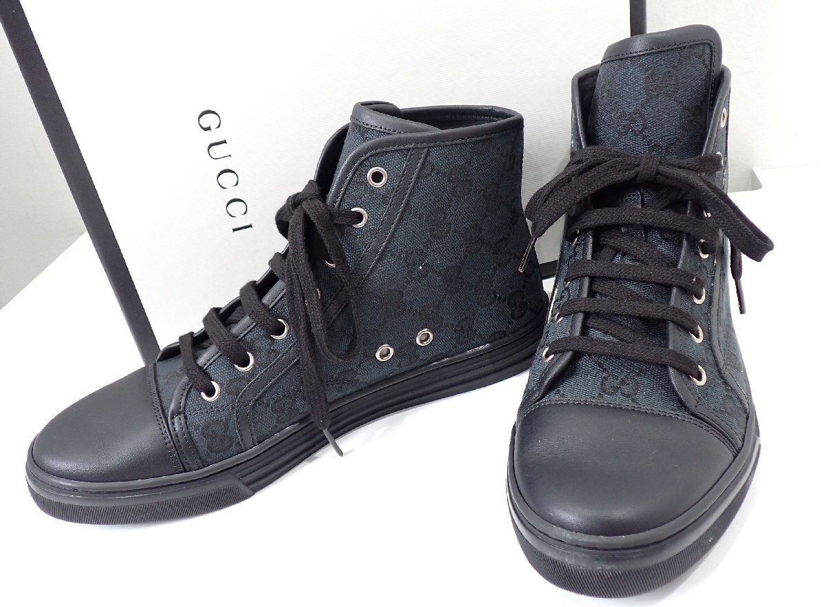> 定価9万円ほど 超美品 グッチ GG柄 総柄 ハイカットシューズ スニーカー ハイカット シューズ ブラック ジャガード 39 25cm 3805