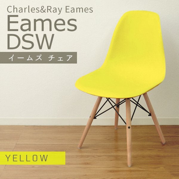 - 【イエロー】新品 ダイニングチェア イームズチェア 耐荷重120kg 美品 おしゃれ 北欧 デザイナーズ家具 木脚 カフェ 会議室 チェア 椅子