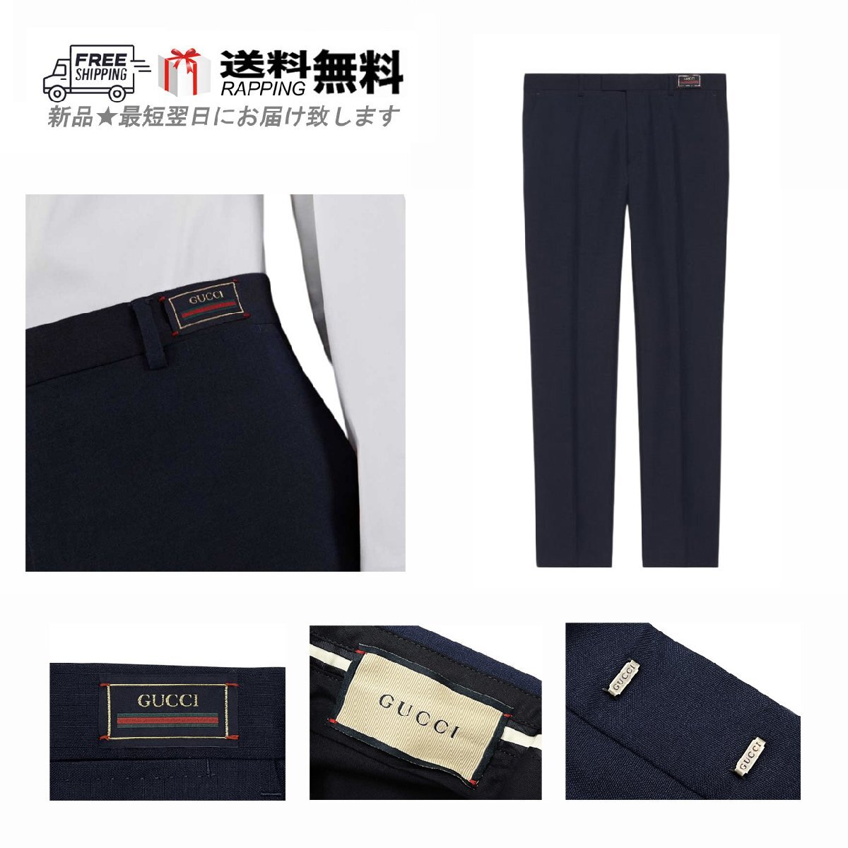 > L368-46.. GUCCI グッチ パンツ ボトムス スラックス パッチ タグ フォーマル コットン モヘヤ イタリア製 ★ ネイビー