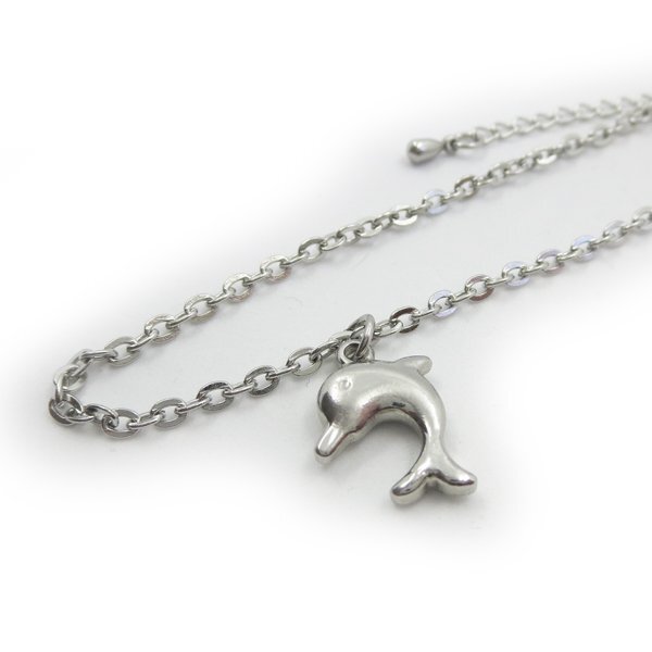 - ステンレスチェーンアンクレット平小豆2.4mm イルカ ドルフィンチャーム付き 25cm(21cm+4cmアジャスター) FN204