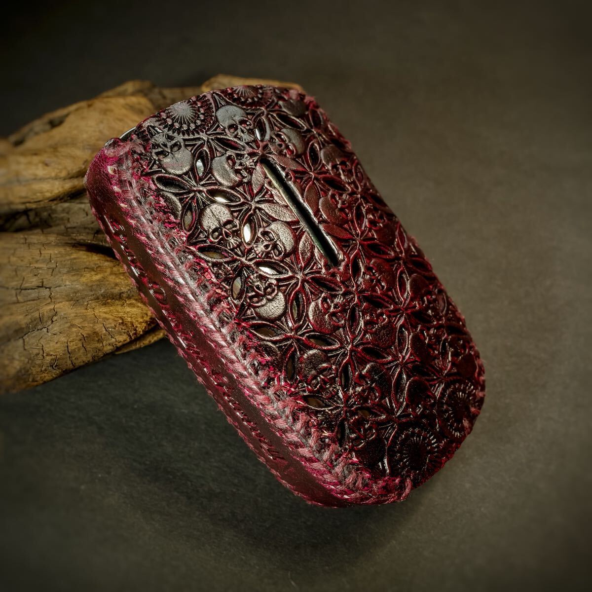 - 【PloomCUBE】プルームキューブ 本革製カバー〝髑髏結〟朱殷