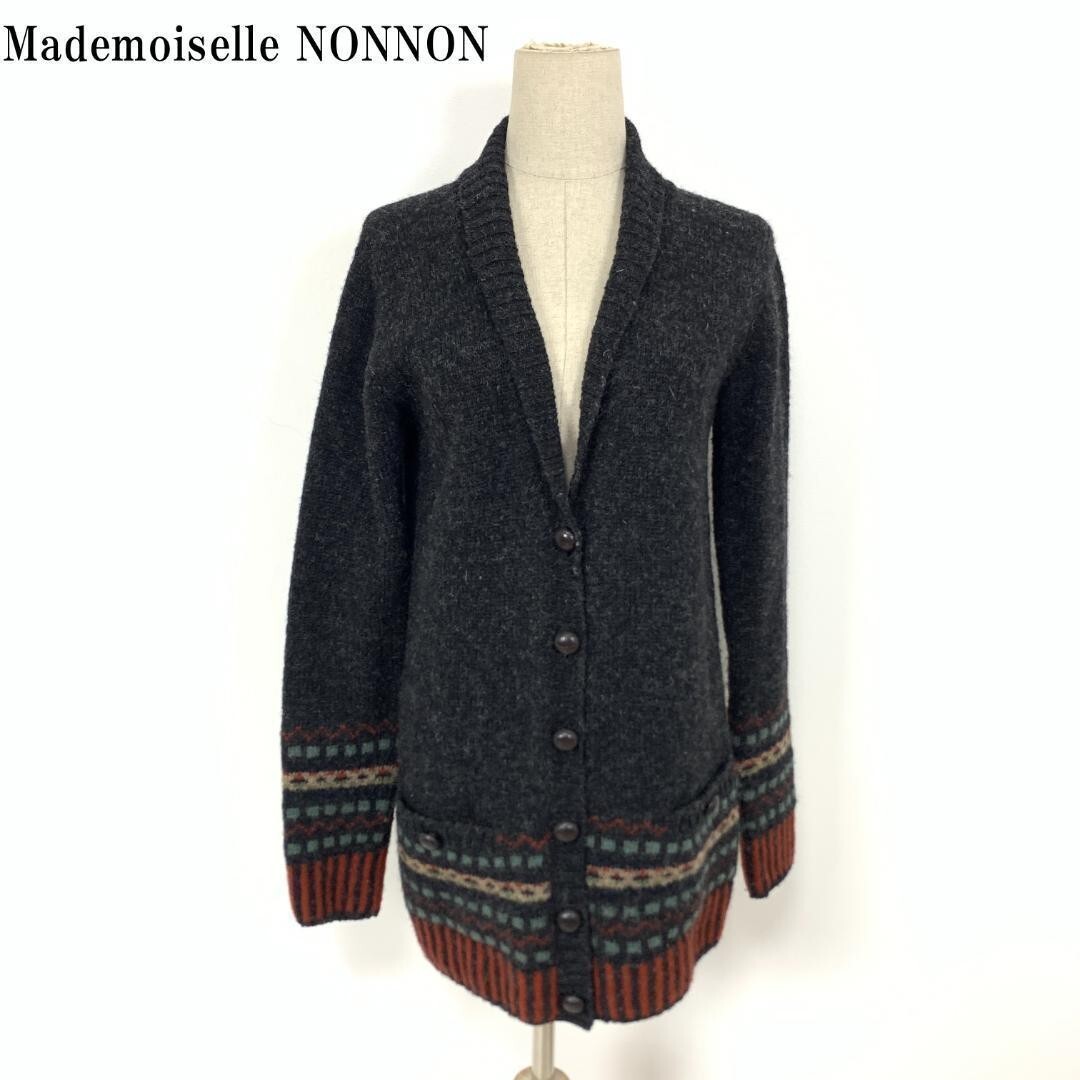 - LA7922 マドモアゼルノンノン Mademoiselle NONNON カジュアル リブニット ウール100% ウール 長袖ニット カーディガン グレーXL