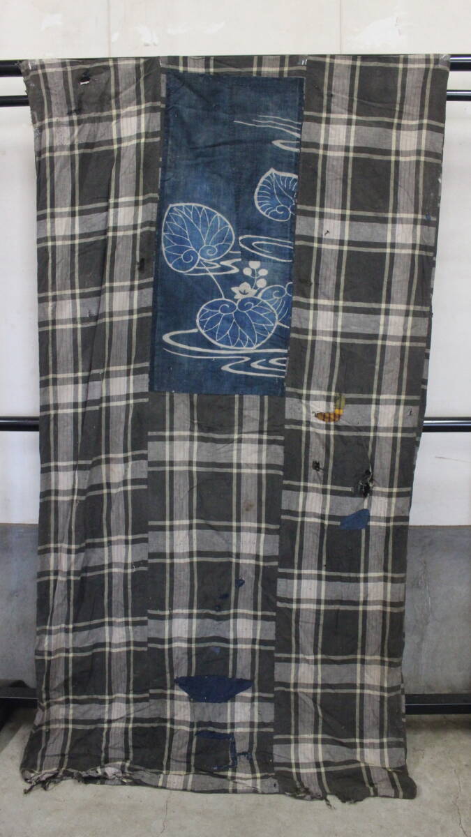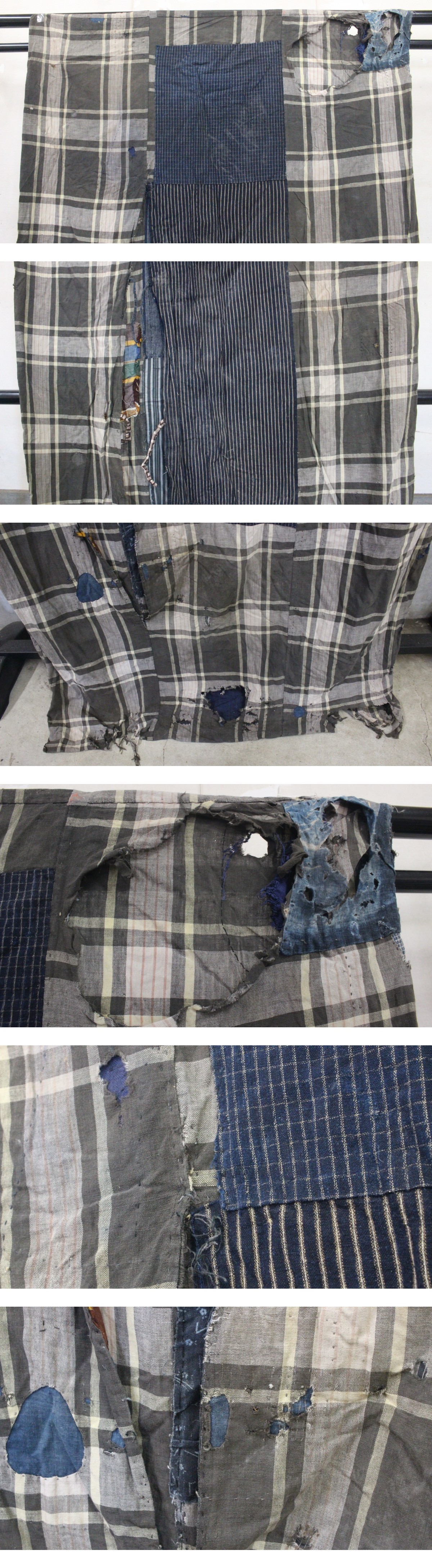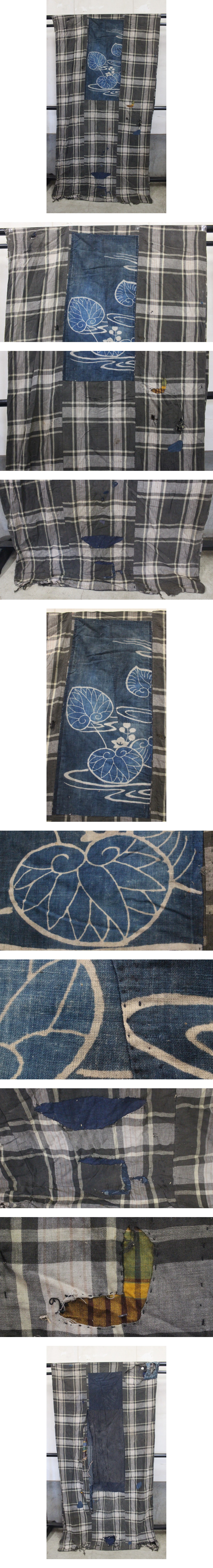 - 襤褸ボロ継ぎ接ぎ 藍染木綿 3幅布団皮 時代物 日本古布アンティーク生地 チ77
