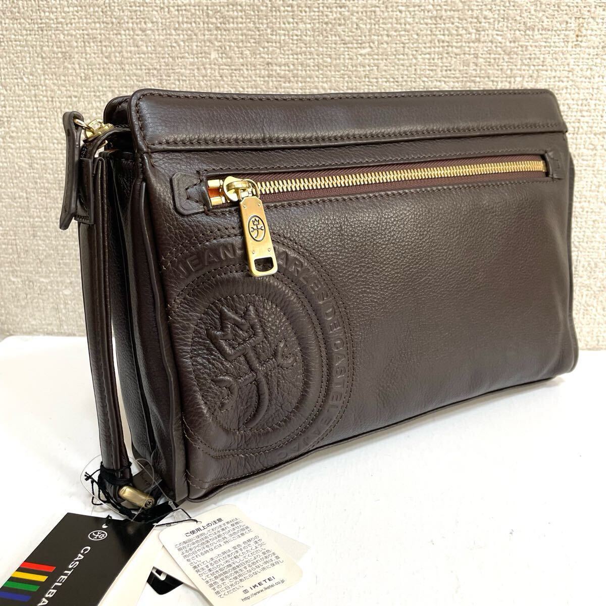 - 新品 カステルバジャック 牛革レザー セカンドバッグ 定価2.6万 ポーチ クラッチバッグ 085202 85202