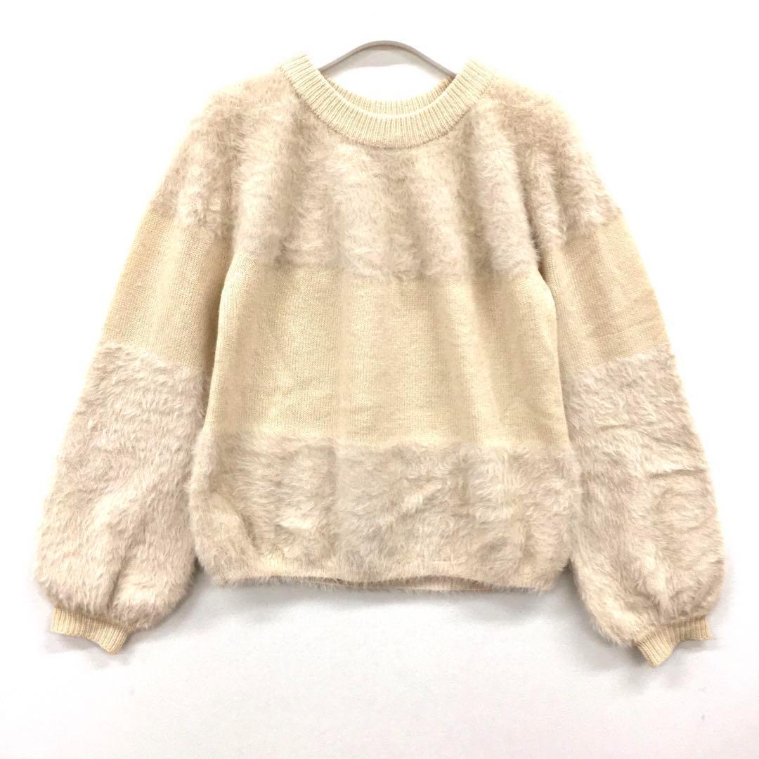 - DURAS デュラス シャギー切替ニットトップス ベージュ