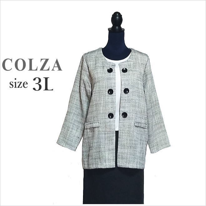 > 〔COLZA〕白黒ラメツイードカットソー調カーディガン ジャケット ノーカラー 羽織り ㈲コルツァ レディース ゆったりサイズ 3L ☆送料込み