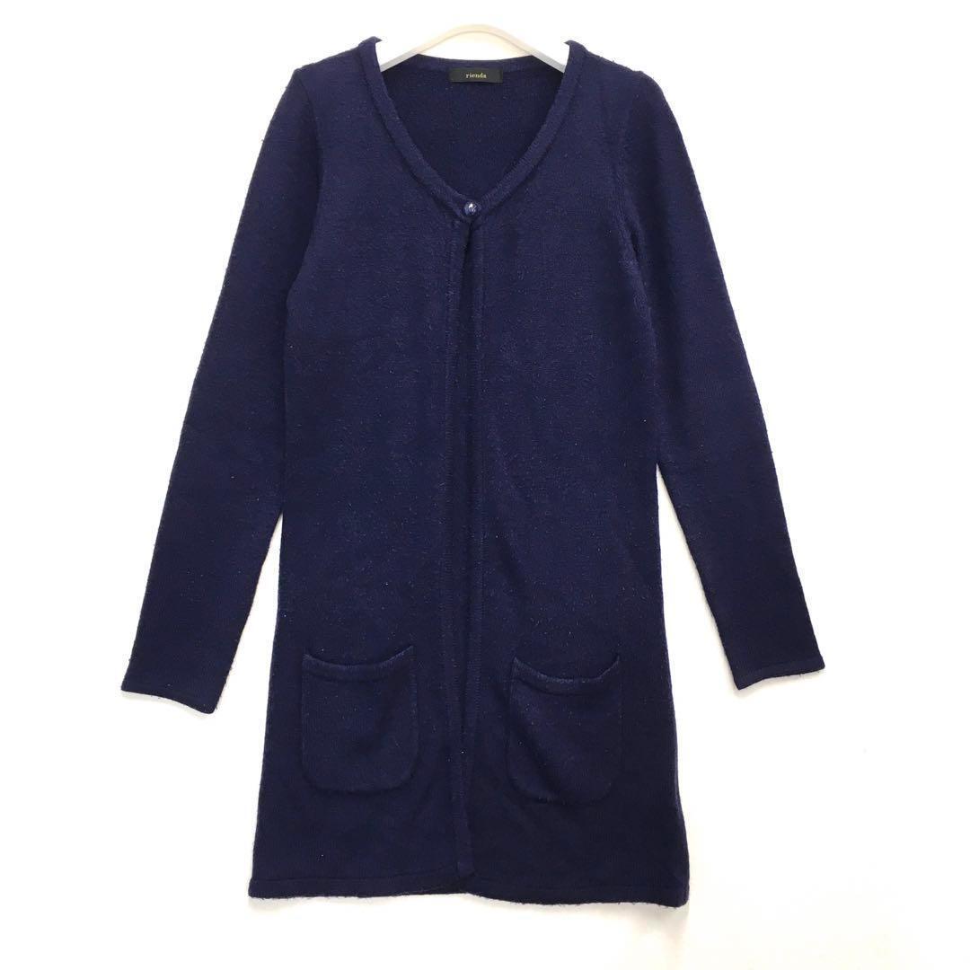- rienda リエンダ ロングニットカーディガン ネイビー