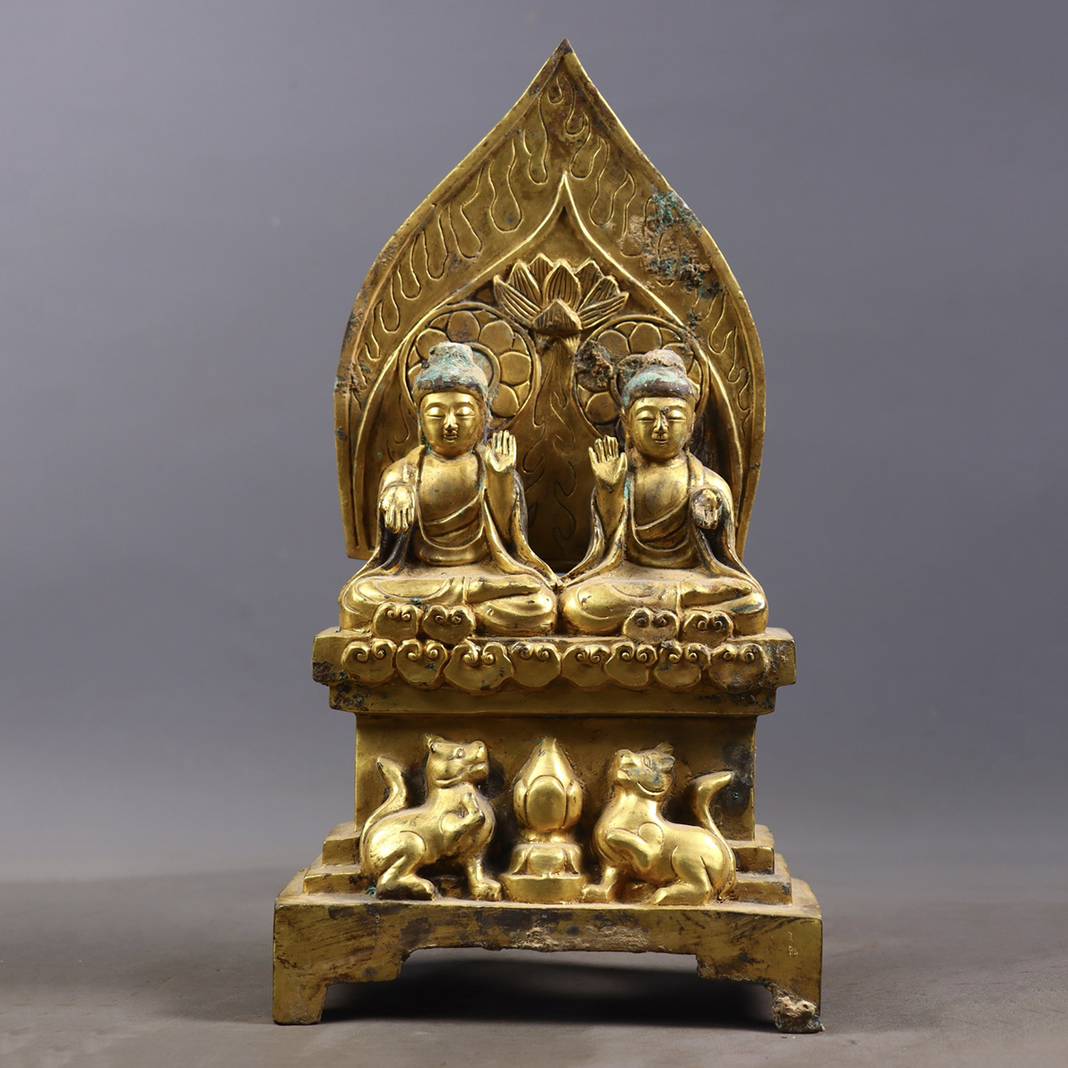 - ▽鴻▽仏教古美術 北魏朝時代 古銅塗金彫 仏像 仏龕 廃寺買取 時代物 中国古美術 骨董品