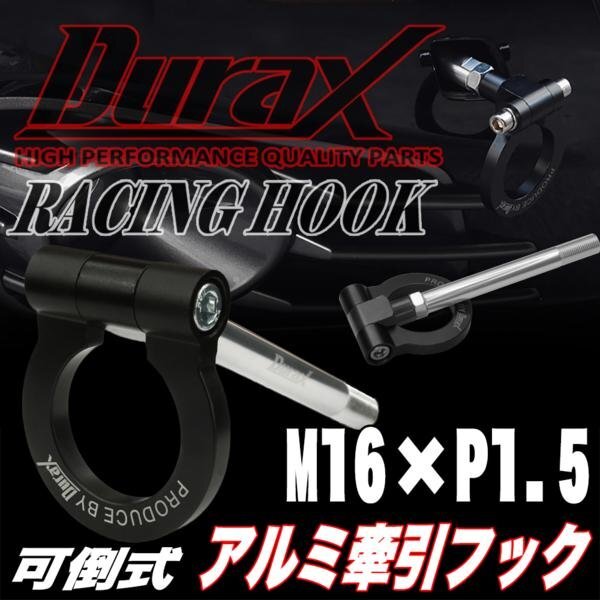 > DURAX正規品 ブラック 黒 けん引 フック 汎用 牽引フック トーイングフック M16×P1.5 可倒式 脱着式 折りたたみ式 軽量 ドレスアップ