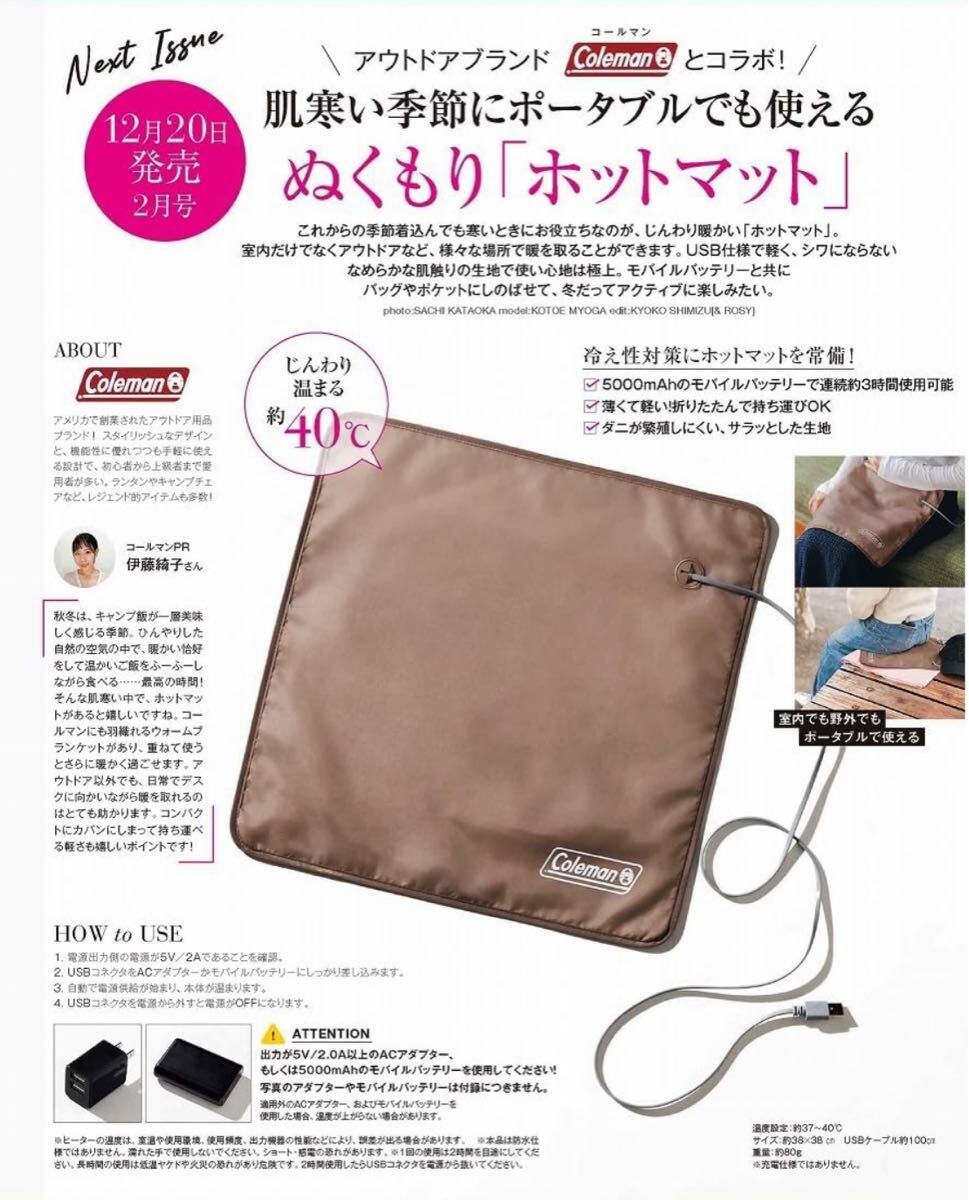 - &ROSY2025年2月号付録★Coleman 寒い季節にポータブルでも使える ぬくもりホットマット!