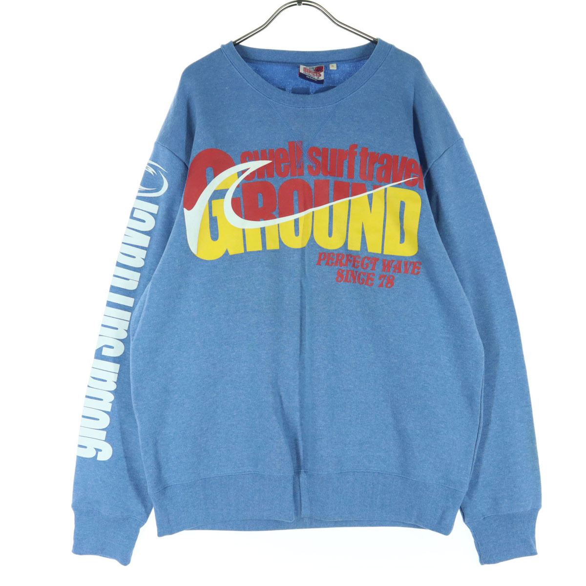 DEPICTS デピクツ ビッグプリント 長袖 前V 裏起毛 トレーナー XL ブルー系 メンズ