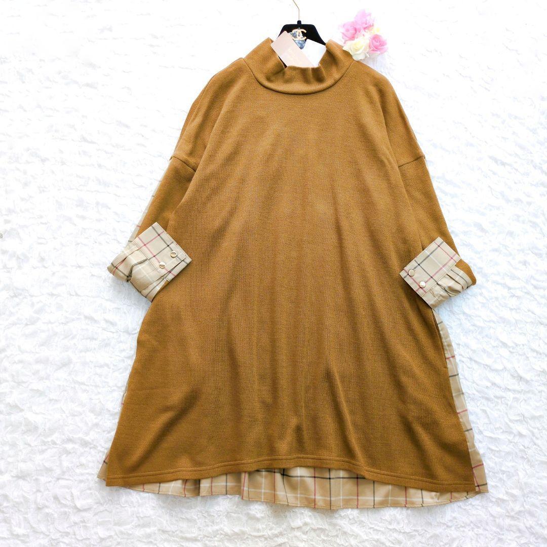 > 【新品未使用タグ付き】Rose Tiara 異素材チュニックニットソー 42 ローズティアラ 大きいサイズ XL 切り替え ドッキング
