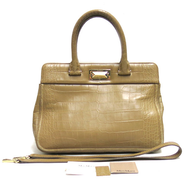 - Max Mara クロコ型押し 2WAY ハンドバッグ ショルダーバッグ 定価120,750円 ベージュ マックスマーラ
